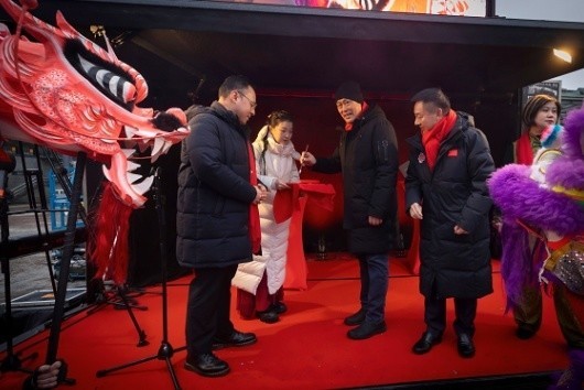 中国驻芬兰大使王同庆(中)为舞龙、舞狮点睛。中国驻芬兰大使馆供图
